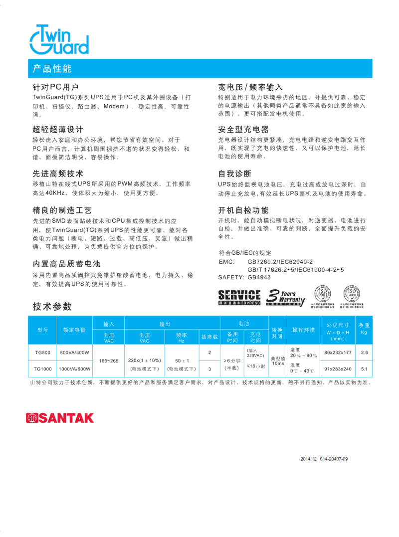 先進的SMD表面貼裝技術(shù)和 CPU集成控制技術(shù)的應用,使TwinGuard(TG)系列UPS 的性能更可靠。能對各類電力問題 ( 斷電、短路 、過載 、高低壓、突波) 做出準確、可靠地處理,為負載提供保護。