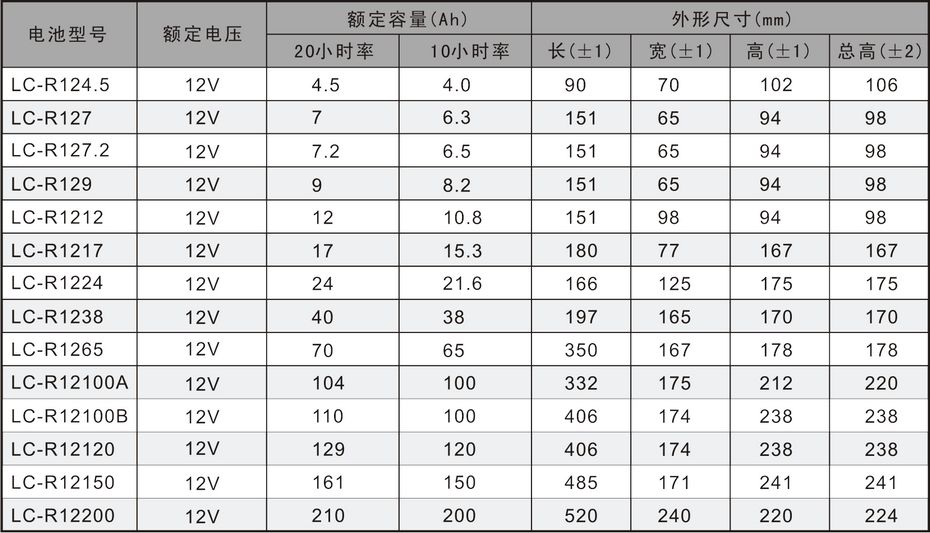 12V系列蓄電池規(guī)格參數(shù):