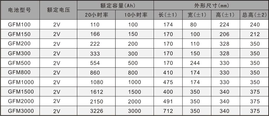 2V系列蓄電池規(guī)格參數(shù):