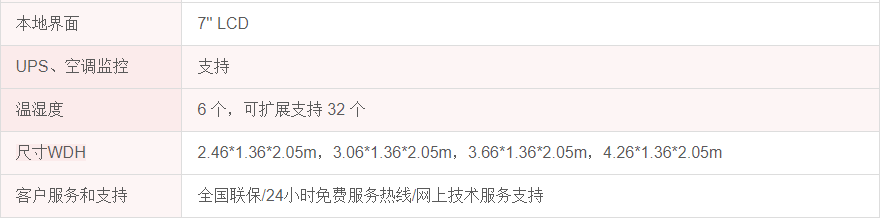 模方采用即插即用的機架式監控系統,除了監測機載UPS,空調,配電設備等的參數,也將溫濕度、煙感、漏水、門磁等監測功能集于一體,并支持消防聯動及視屏監控。