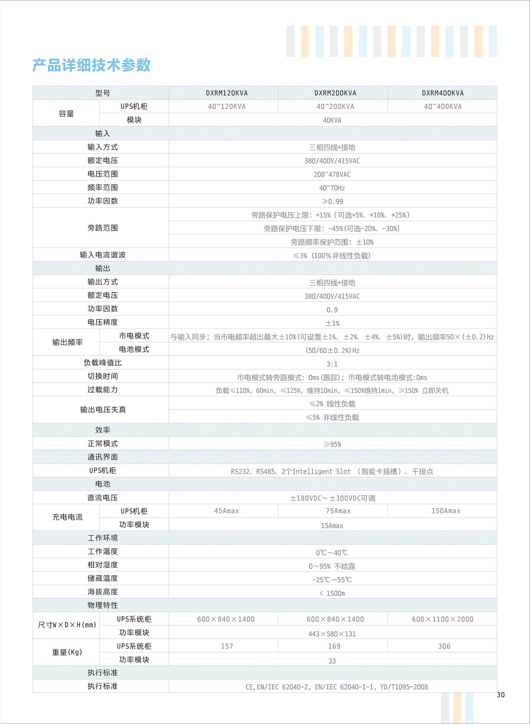 山頓模塊化DXRM系列40K(40-400KVA)山頓DX系列為三進(jìn)三出UPS,產(chǎn)品采用模塊化設(shè)計(jì)與N+X并聯(lián)冗余技術(shù),產(chǎn)品容量覆蓋40KVA到400KVA之間的各個(gè)功率段,方便用戶靈活配置與逐步投資。該系列UPS幾乎可以完全解決所有的電源問題,如斷電、市電高壓、市電低壓、電壓瞬間跌落、減幅振蕩、高壓脈沖、電壓波動、浪涌電壓、諧波失真、雜波干擾、頻率波動等電源問題。適用場景:本產(chǎn)品適用范圍廣泛,從計(jì)算機(jī)設(shè)備到通...